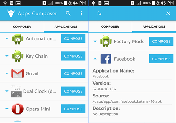 بعد ذلك ستتمكن من اختيار أي تطبيق ترغب في اقاف تنبيهاته و اشعاراته أيضا ومن ثم تقوم بالضغط على زر Compose المتواجد على يمين أيقونة التطبيق ، و عليه يمكنك كتم أصوات التنبيهات و بسهولة هذا و يجدر الذكر بأن التطبيق هو متوافق مع اصدارات الأندرويد 4.4 فما فوق !